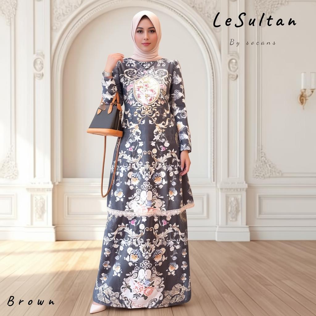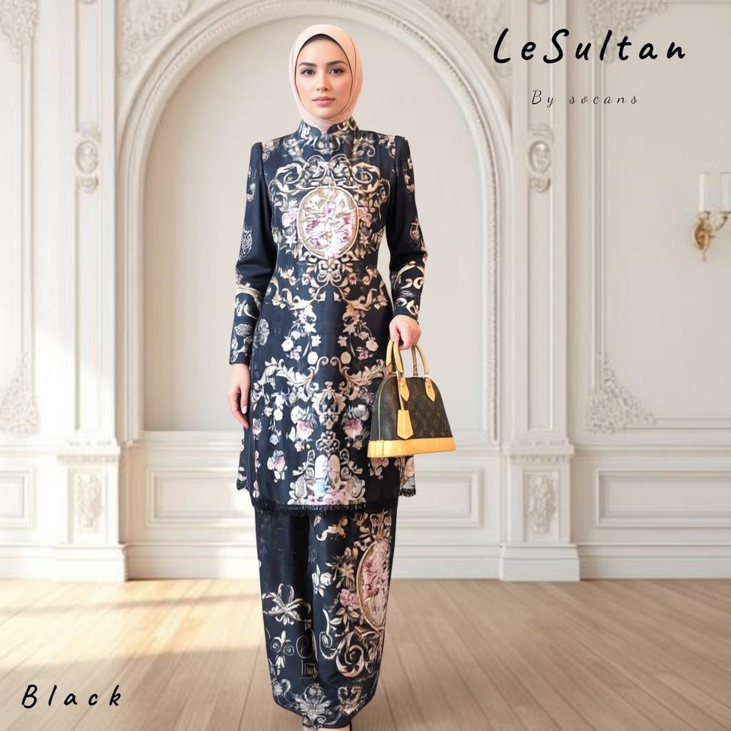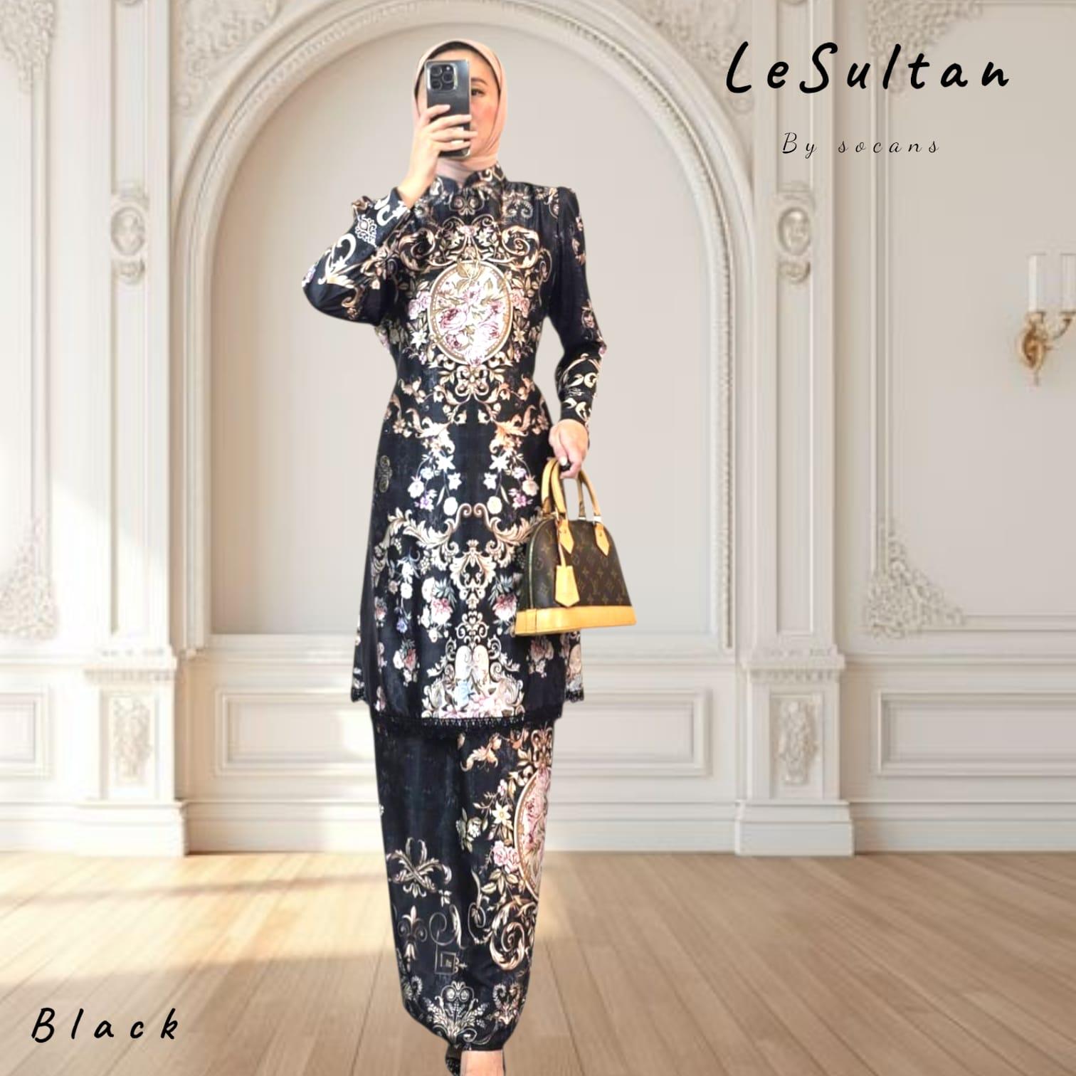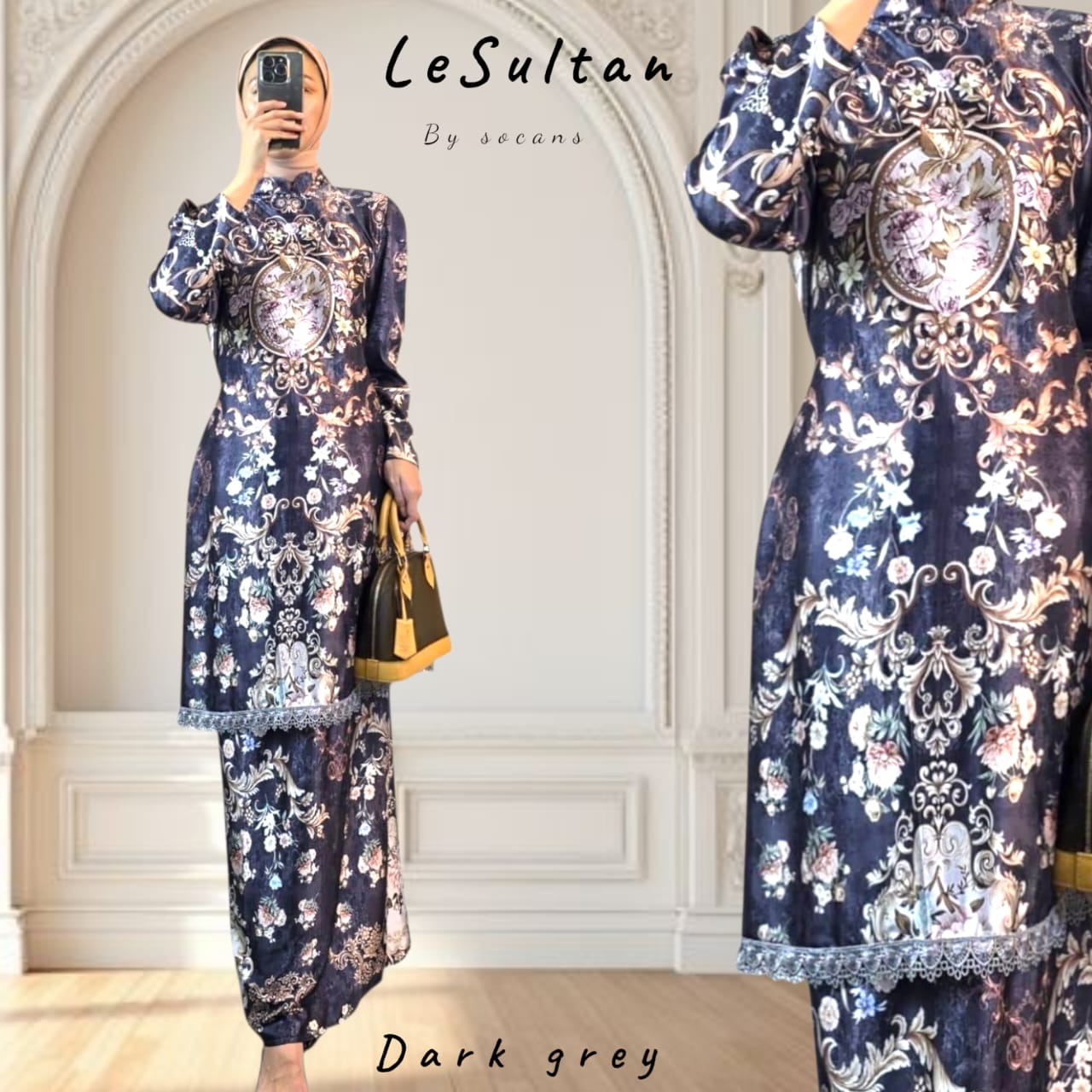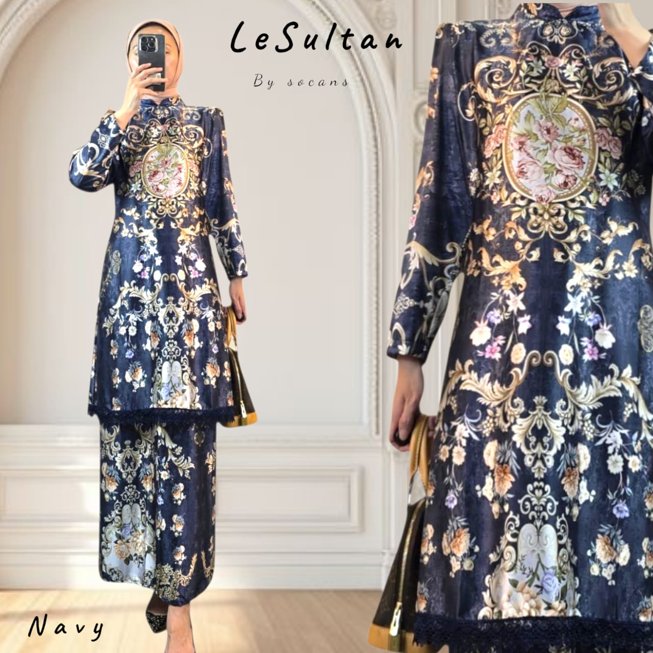 Setelan 2IN1 yang elegan dan lengkap, terdiri daripada atasan dan skirt yang dipadankan dengan motif Sultan yang cantik.